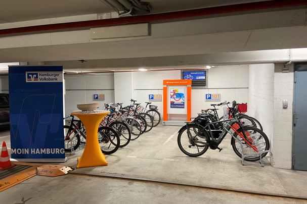 „Radfahren ist aktiver Klimaschutz, ist gut für die eigene Gesundheit sowie das Gesundheitssystem und entlastet die Städte sowohl ökonomisch als auch ökologisch gegenüber dem sonstigen Verkehr.“ Dieser Satz aus dem Klimaschutzkonzept der Hamburger Volksbank steht beispielhaft für das klare Engagement der Genossenschaftsbank für die Radfahrenden im eigenen Haus. Dass dies auch eine Richtschnur für das Handeln der Volksbank als Arbeitgeberin ist, zeigt sich an den vielen Vorteilen, die Radfahrende dort genießen. Klar – ein Finanzierungsmodell wie das vom Arbeitgeber bezuschusste Dienstradleasing ist für die Bank eine selbstverständliche Fingerübung. Darüber hinaus gibt es neben vernünftigen Abstellmöglichkeiten zum Beispiel auch einen tollen Werkstattraum für die Beschäftigten. Hier kann nicht nur mal schnell aufgepumpt werden – auch aufwändigere Reparaturen sind dank guter Werkzeugausstattung kein Problem. Und dann bietet die Volksbank auch noch eine radelnde Betriebssportgruppe, Infoveranstaltungen und Serviceangebote wie einen regelmäßigen Fahrrad-Check mit Kleinreparaturen und einige weitere Vorteile mehr. Außerdem beteiligt sich die Volksbank Hamburg seit Jahren sehr engagiert beim STADTARDELN in Hamburg. Dafür werden in der Tiefgarage sogar eigens Parkplätze in Abstellanlagen für die Aktion umgewandelt, weil mit erhöhtem Bedarf gerechnet werden muss.
