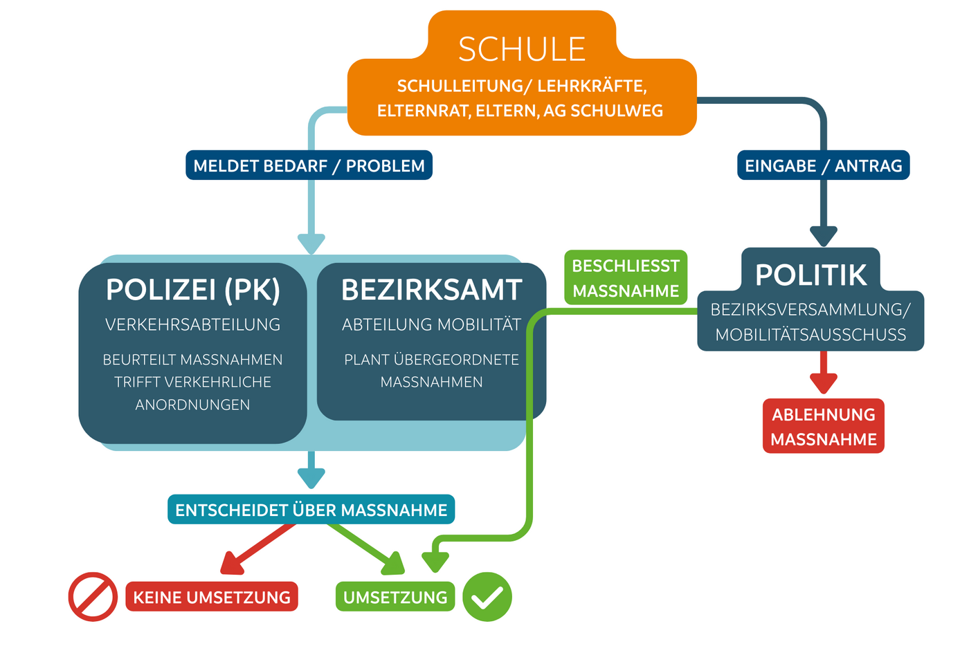 Für sichere Schulwege braucht es häufig die Initiative von Eltern, Schülerinnen, Lehrerinnen und Schulleitungen. Besonders bei baulichen Veränderungen sind Geduld und Durchhaltevermögen gefragt, denn Planungsprozesse dauern oft lange.