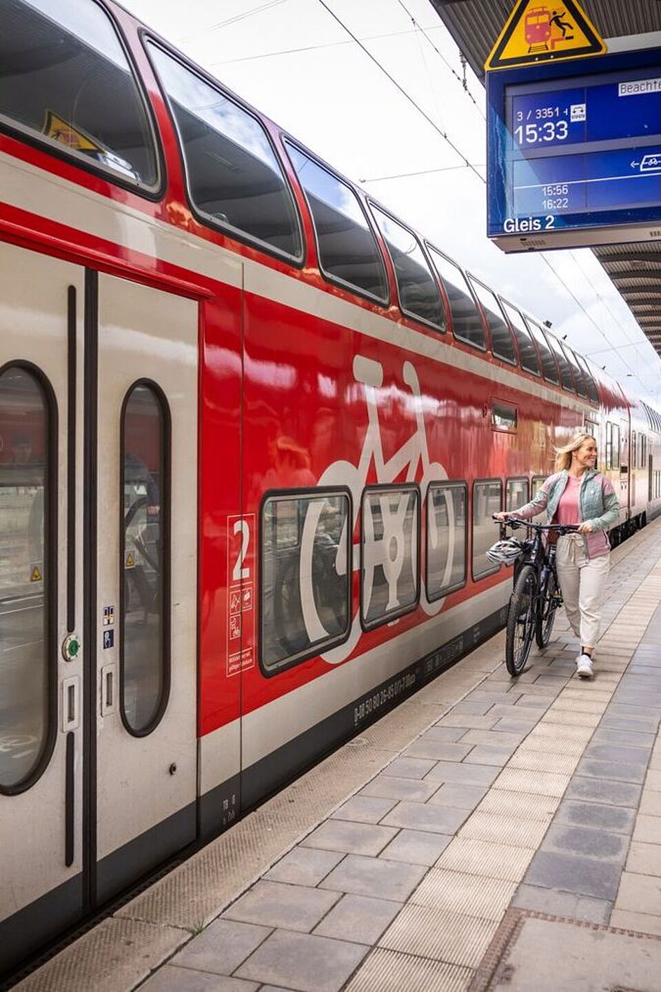 Ein deutschlandweit gültiges Fahrradticket für den Nahverkehr kostet am Automaten oder in der App 7,50 Euro. Jeder Verkehrsverbund hat aber eigene Regeln und eigene Tarife zur Fahrradmitnahme. In manchen Regionen ist die Fahrradmitnahme kostenlos. Tipp Nr. 9: Deshalb empfiehlt es sich, die Beförderungsbedingungen im Regionalverkehr vor der Reise zu studieren.