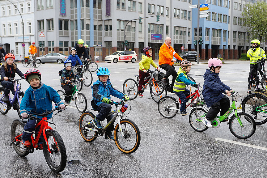 Zweimal im Jahr bringt die Initiative „Kinder aufs Rad“ zehntausende Kinder, Jugendliche und Familien in ganz Deutschland für Fahrraddemonstrationen auf die Straße. In über 200 Orten demonstrieren Kinder und Familien für kinder- und fahrradfreundliche Wege unter dem Motto „Straßen sind für alle da“. In Hamburg organisiert ein Bündnis aus ADFC Hamburg, Parents for Future Hamburg und VCD Nord die Kidical Mass seit 2022 gemeinsam.