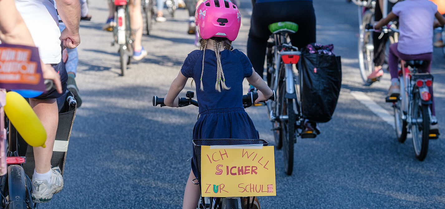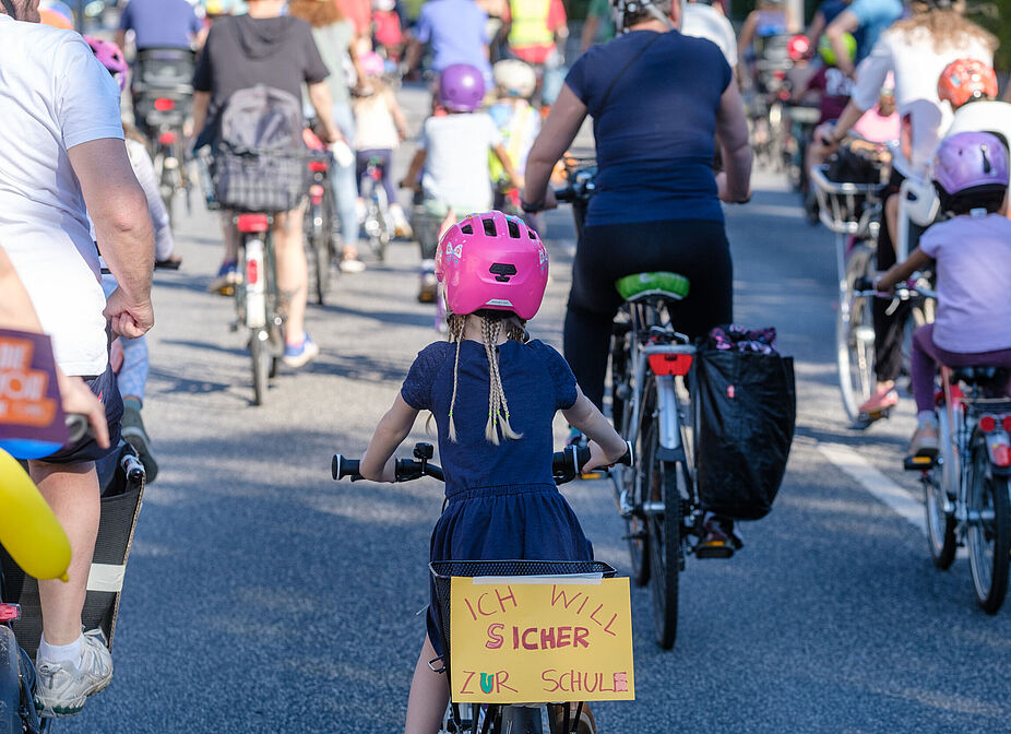 Ich will sicher zur Schule - so die Forderung einer jungen Teilnehmerin auf der Kinder Fahrrad Demonstration Kidical Mass © ADFC Hamburg / Kay Brockmann