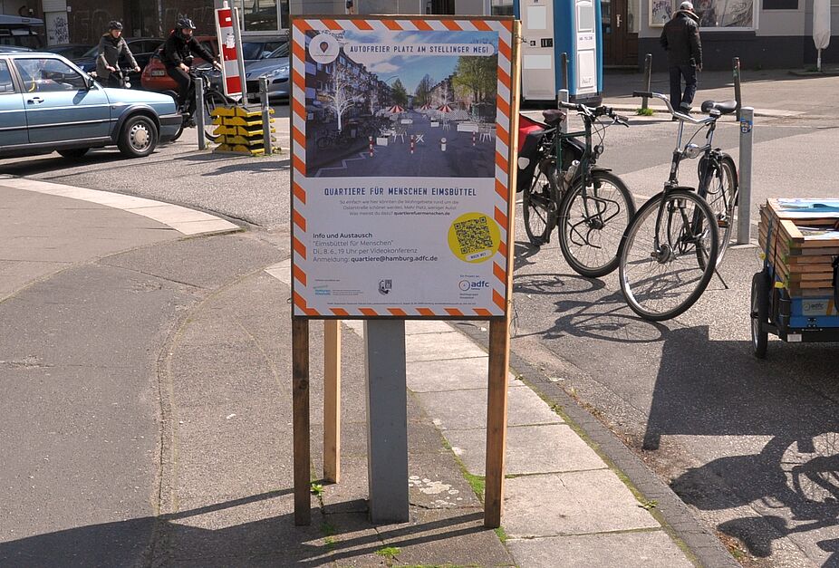 Bereits jetzt stehen in den Straßen und Wohngebieten rund um die Osterstraße fünfzig Straßenplakate an Orten, für die der Fahrradclub eine Maßnahme zur Verkehrsberuhigung und Verbesserung der Aufenthaltsqualität vorschlägt. Auf den Plakaten sind jeweils die Ideen zur Verkehrsberuhigung für genau den Standort mithilfe von Augmented-Reality-Bildern (AR, „Erweiterte Realität“) visualisiert. Passant*innen können mithilfe eines QR-Codes über ihr Smartphone direkt die Webseite mit den Erläuterungen zu diesem Ort aufrufen und den Vorschlag kommentieren. Die Orte sind die Osterstraße, die Kreuzung Osterstraße/ Schwenckestraße, der Stellinger Weg, die Unnastraße und an der Apostelkirche.