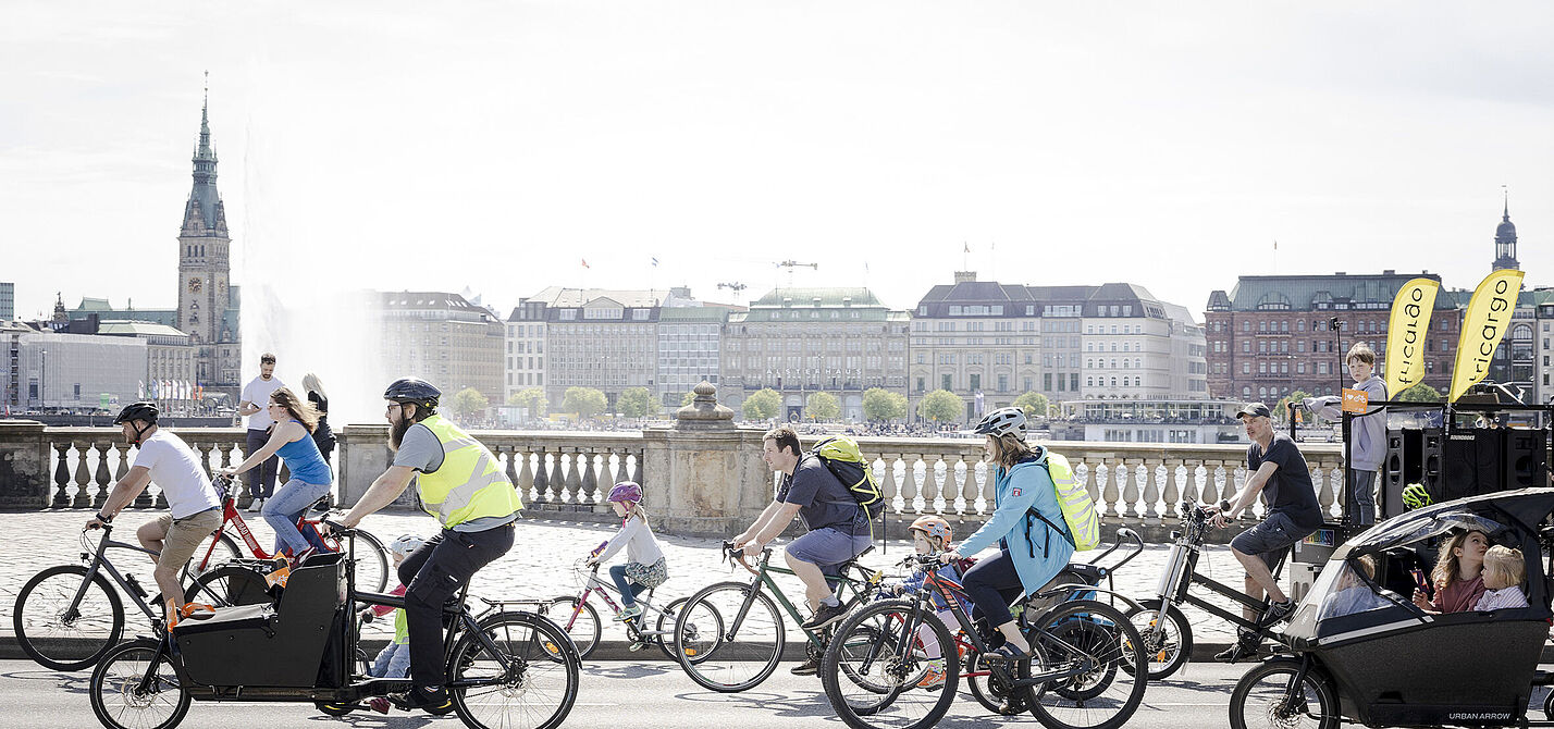 In Hamburg ist allein der Verkehrssektor zurzeit für CO2-Emissionen in Höhe von 3,3 Millionen Tonnen im Jahr verantwortlich. Durch eine Erhöhung des Radverkehrsanteils am Gesamtverkehrsaufkommen von nur zehn Prozent – aktuell liegt er bei etwa 22 Prozent – würden jährlich rund 300.000 Tonnen CO2 eingespart. Pruin: „Das Fahrrad kann also einen entscheidenden Beitrag zur Klimaneutralität Hamburgs leisten.“